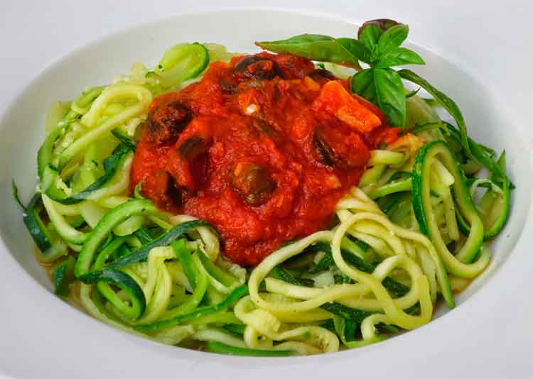 Perfecta idea la de sustituir los hidratos de carbono por unas verduras, el calabacín nos permite hacer unos deliciosos espaguetis con una salsa de tomate natural, una receta sana y deliciosa. Recuerda no cocer en exceso el calabacín para mantener intactos todos sus nutrientes. Nos aporta escasas calorías y multitud de vitaminas y minerales.